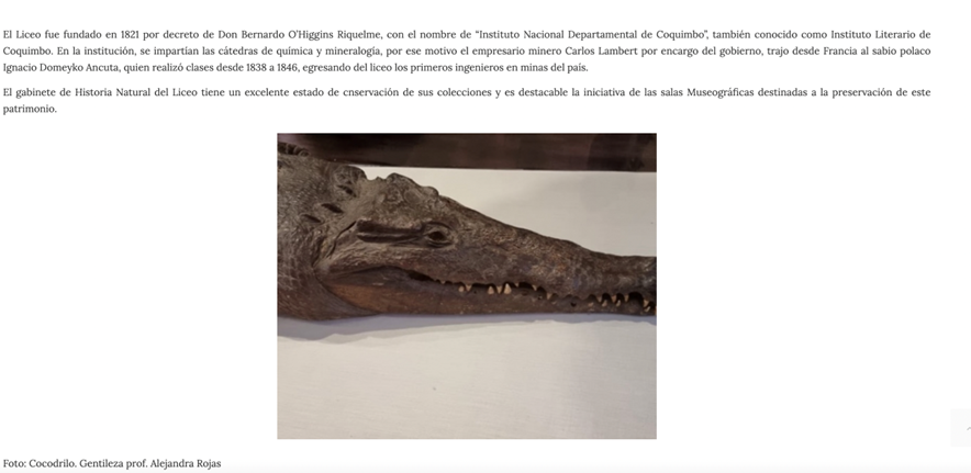 Alejandra Rojas. Liceo Gregorio Cordovez. Salas Museográficas. https://liceogregoriocordovez.cl/salas-museograficas/ [consultado el 29/03/2022]